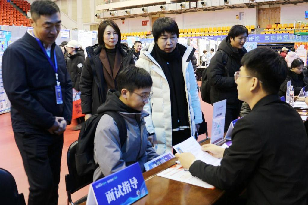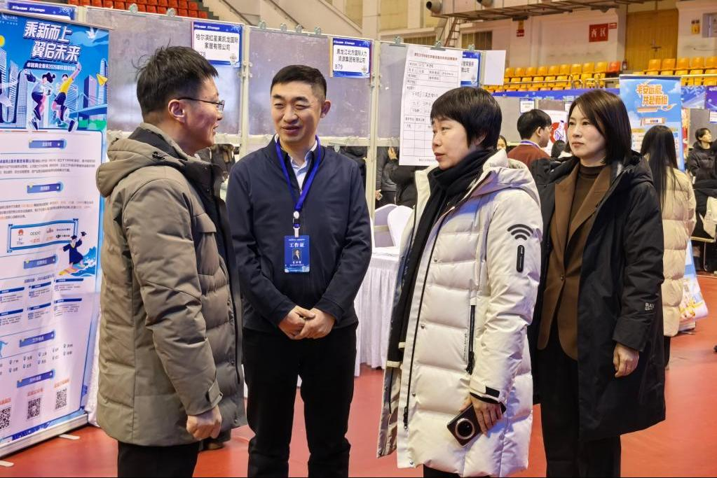 12月23日,黑龙江大学在体育馆举办“有梦想、在龙江”2026届毕业生冬季供需见面洽谈会暨职业规划大赛校园招聘会。校党委副书记刘凤影,招生就业指导中心全体成员、各学院领导班子、专业教师及毕业年级辅导员等相关同志深入招聘现场。