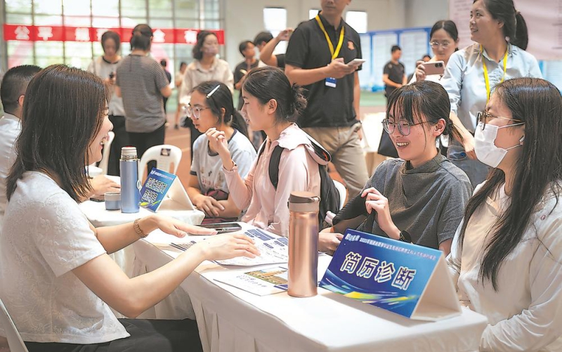 17日下午,由省人社厅、教育厅、工商联、中国海峡人才市场等单位联合举办的“职引未来——2025年福建省夏季毕业生专场招聘会”在福建师范大学举行。本场招聘会共有教育单位、各类企业等250余家单位参加,提供各类岗位740余 个,需求人数超5000余人。