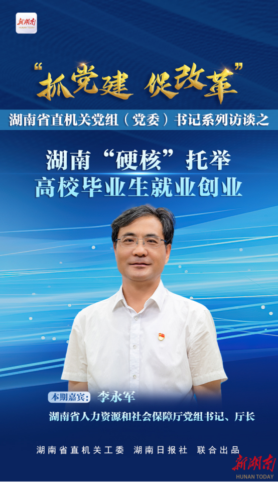 湖南日报9月4日讯(全媒体记者黄晗 刘笑雪 摄影傅聪美编袁向群)每年,超过千万高校毕业生走向社会,就业创业牵动人心。9月5日,由湖南省直机关工委、湖南日报社共同打造的省直机关党组(党委)书记《抓党建促改革》全媒体访谈栏目将推出“促进高校毕业生就业创业”专场。本期节目聚焦破解就业难题,特邀省人社厅党组书记、厅长李永军解读湖南人社系统如何以党建为引领,支持高校毕业生就业创业,做好“稳就业”“好就业”“就好业”“促创业”文章的改革实践。