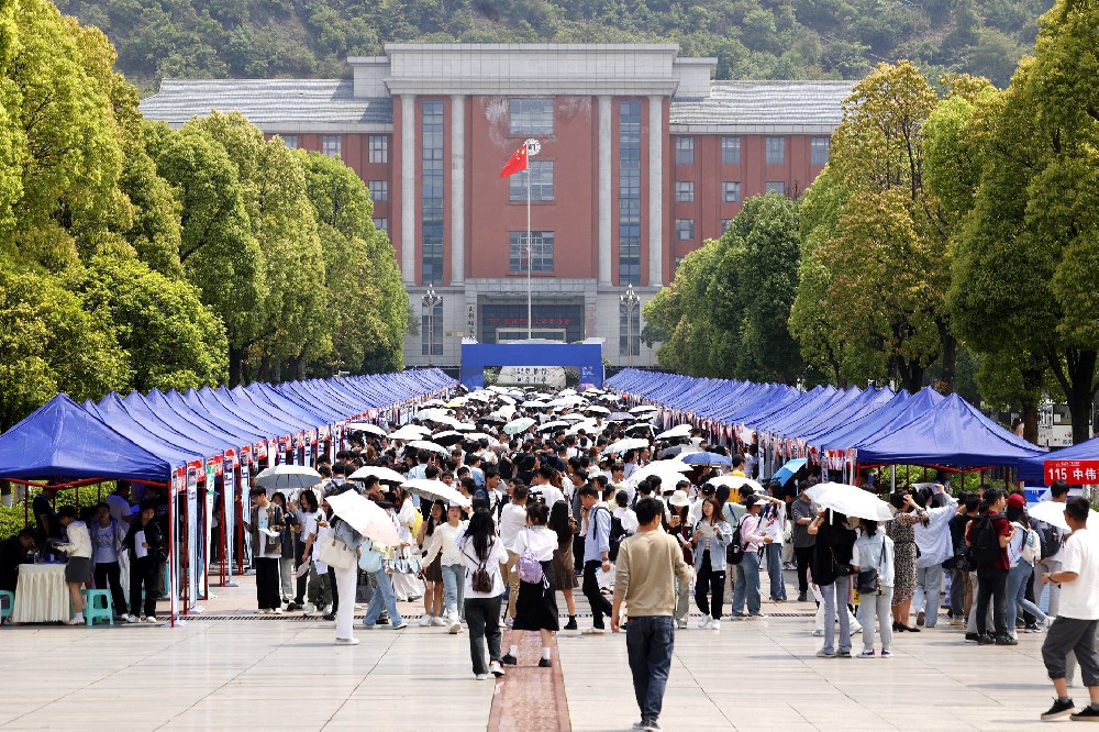时间回到2025年10月14日,“四城拓万岗·才聚大学城”贵安新区花溪大学城2025年秋季巡回招聘会第一场在贵州财经大学举行,线上线下100家企业携大数据、教育、医疗等领域岗位入驻,与求职毕业生面对面搭建起就业对接桥梁。招聘会现场热闹非凡,求职学子们围在各个企业展位前,深入了解岗位信息。