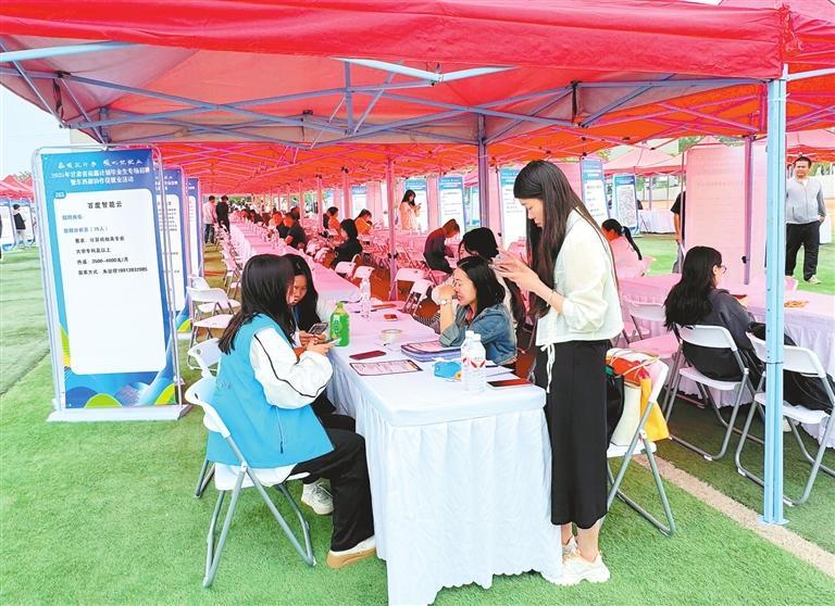近日,甘肃财贸职业学院操场热闹非凡。由省农业农村厅、省人社厅、省教育厅、甘肃中华职业教育社联合主办的“2025年甘肃省雨露计划毕业生专场招聘暨东西部协作促就业活动”在此举行。